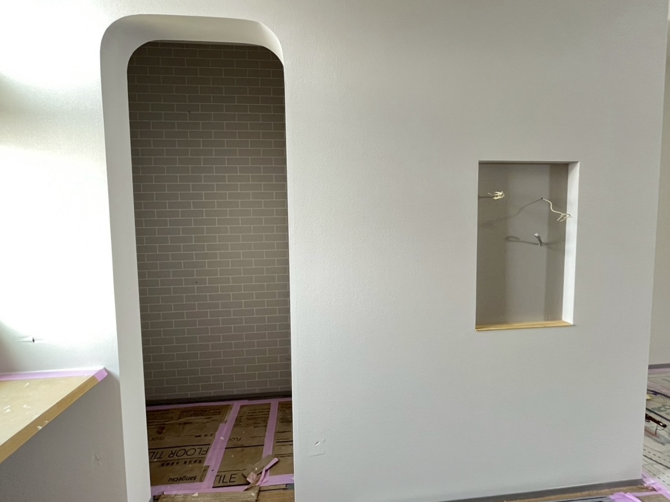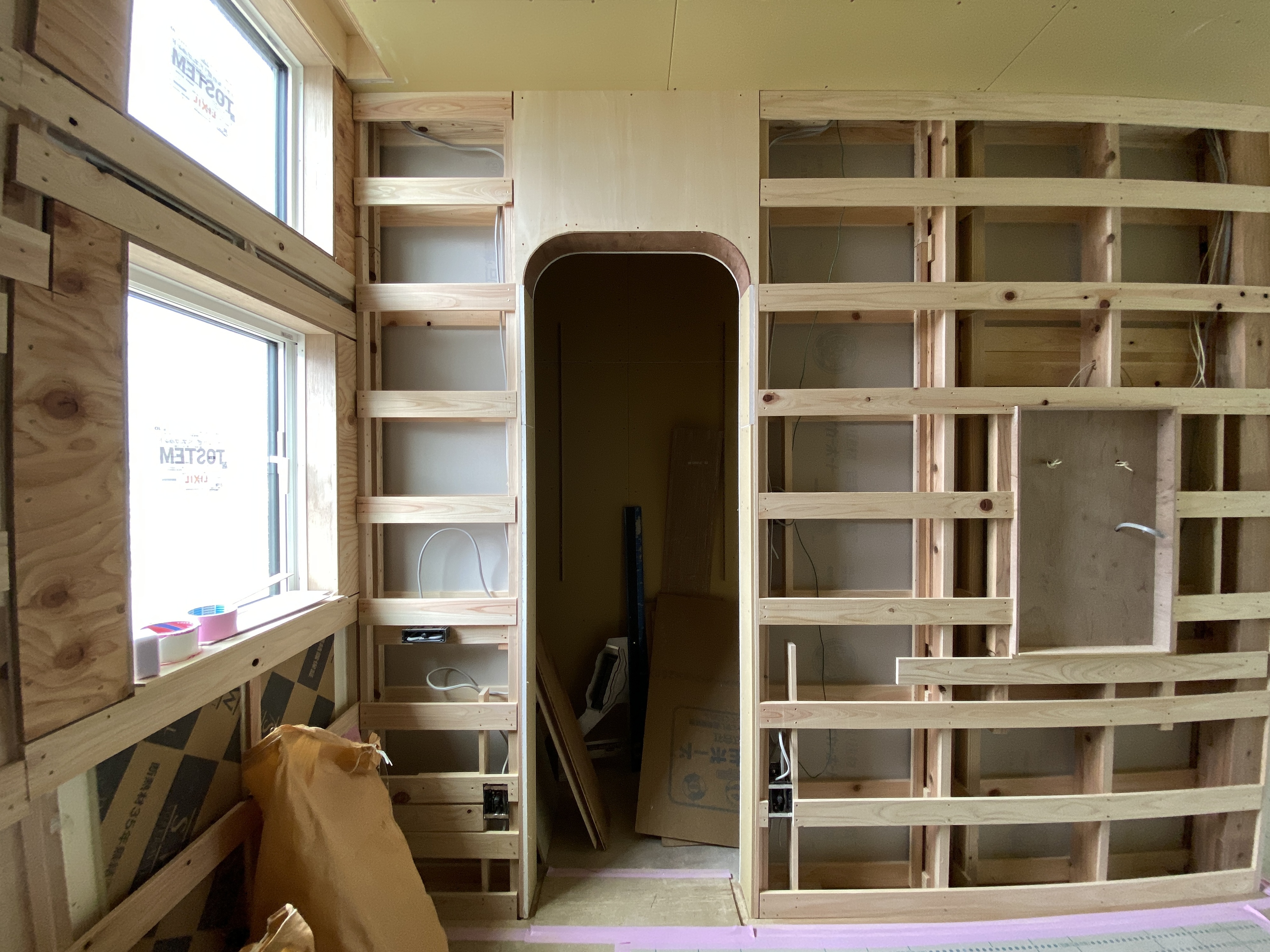 パントリーの入口はアーチ壁で仕上げ、隠れ家のような空間になっています!